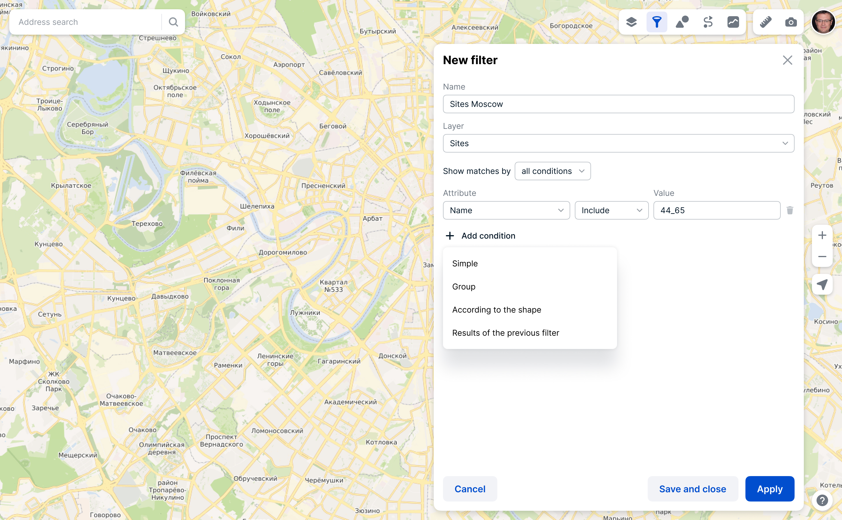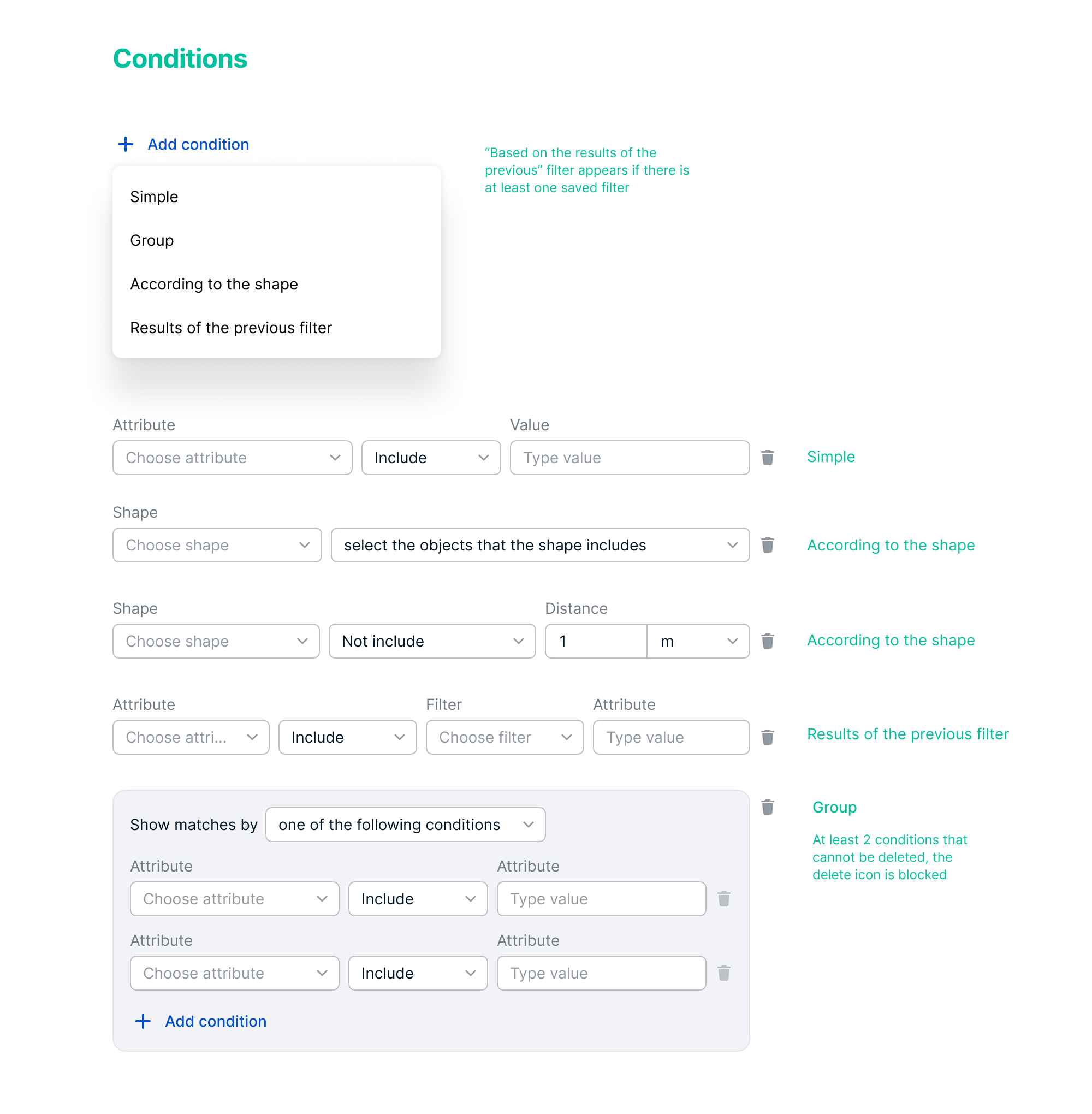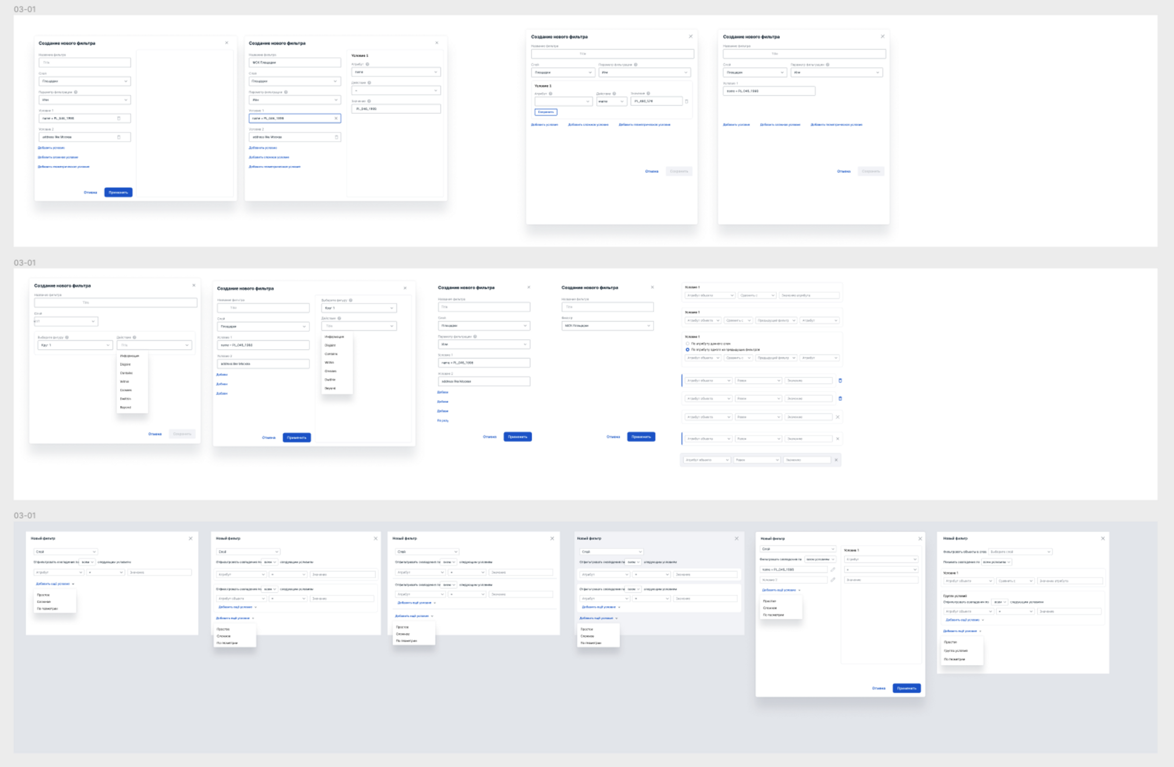 Filters are used to analyze the data and filter the desired objects by attributes. Filters was the most difficult part of work. I discussed it with engineers and did a lot of quick user tests.