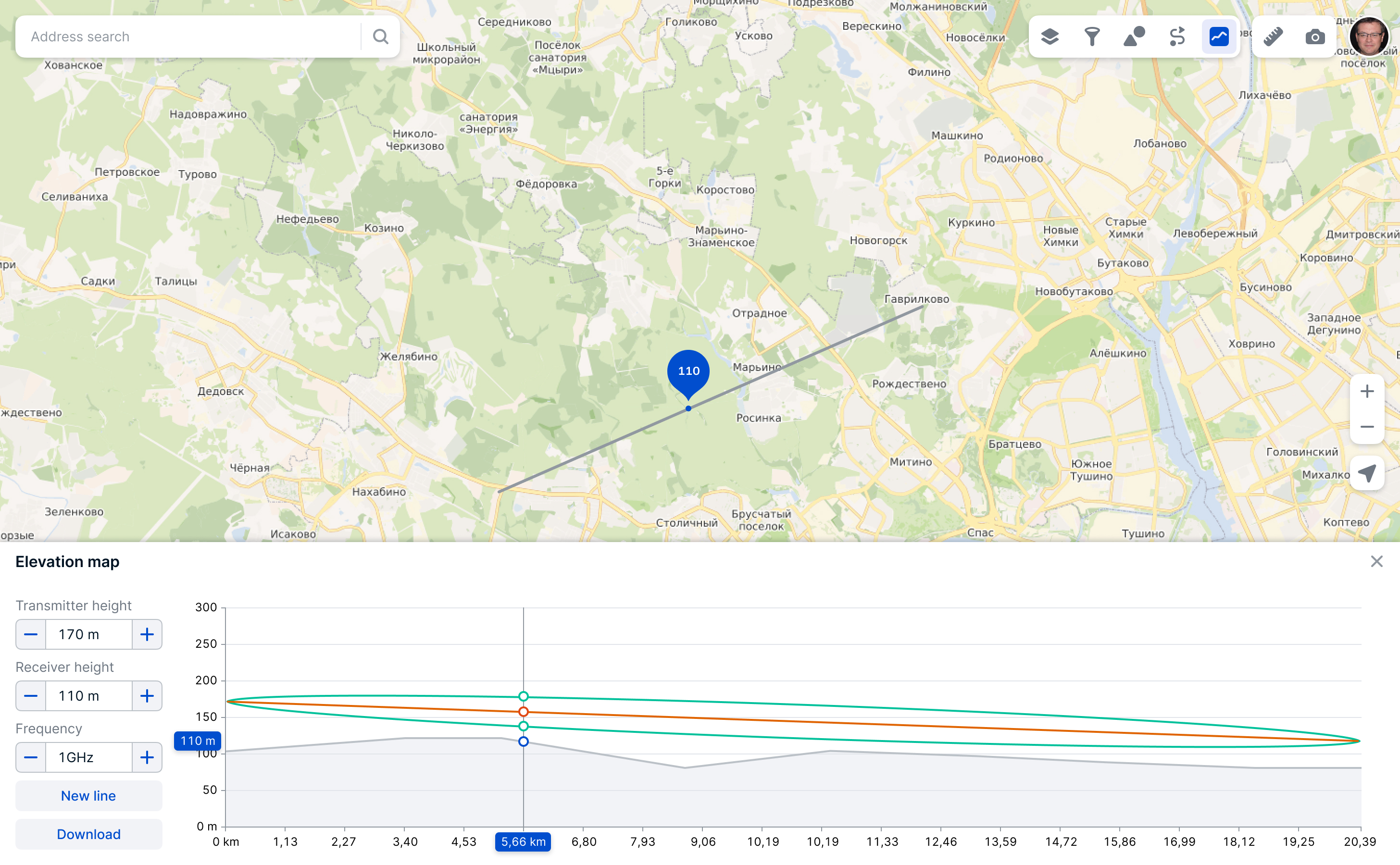 The terrain elevation map is used to install new cellular equipment and helps calculate the necessary height of the cellular receiver and transmitter. For communication to work, there must be no interference between the transmitter and the receiver.
