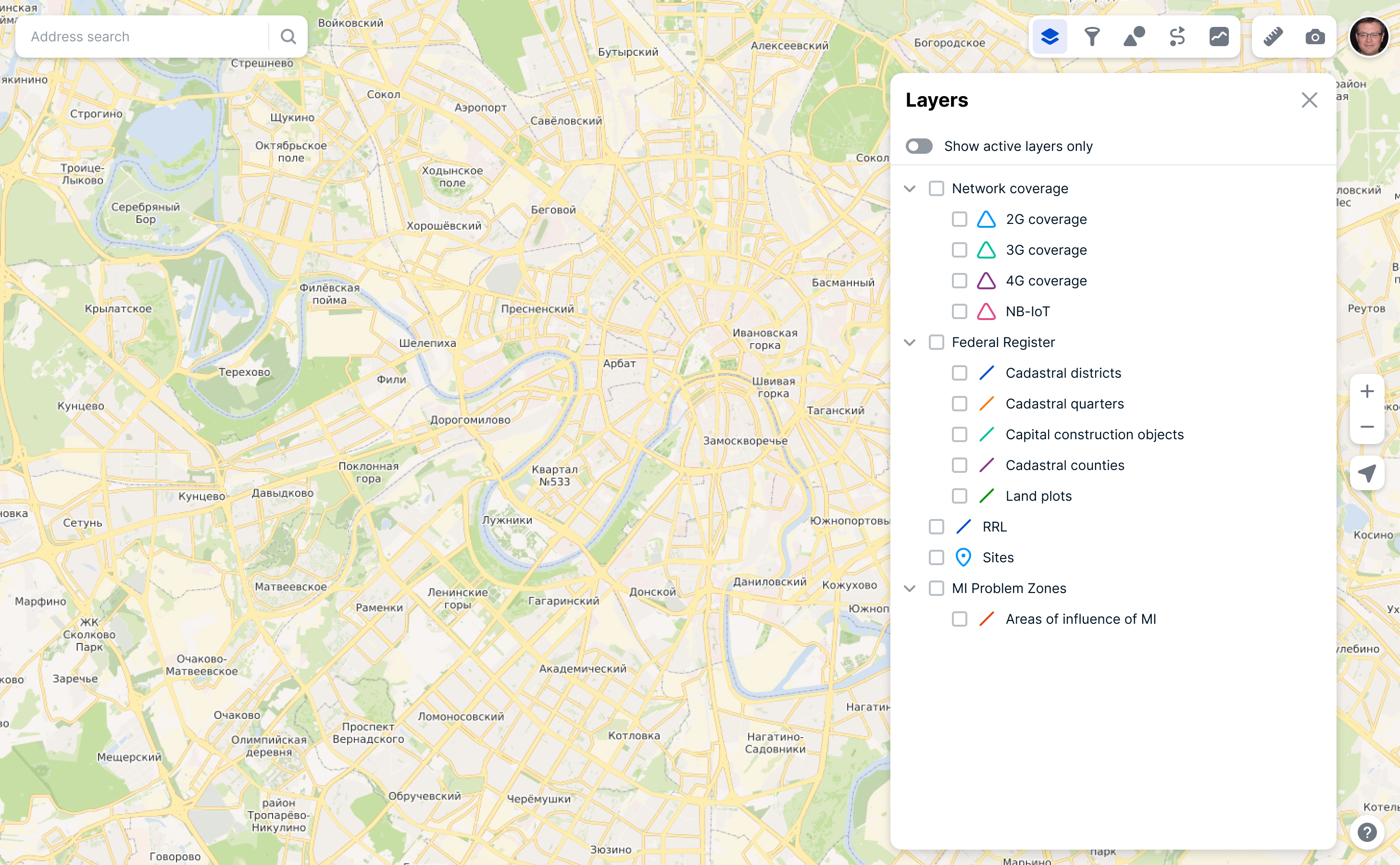 Egis is the internal geographic information system. It stores, processes, and displays spatial data that various departments need to work. For example, technical data: network coverage, sites with base stations and radio relay links. Or sales network data: points of sale and competitors’ points of sale.
