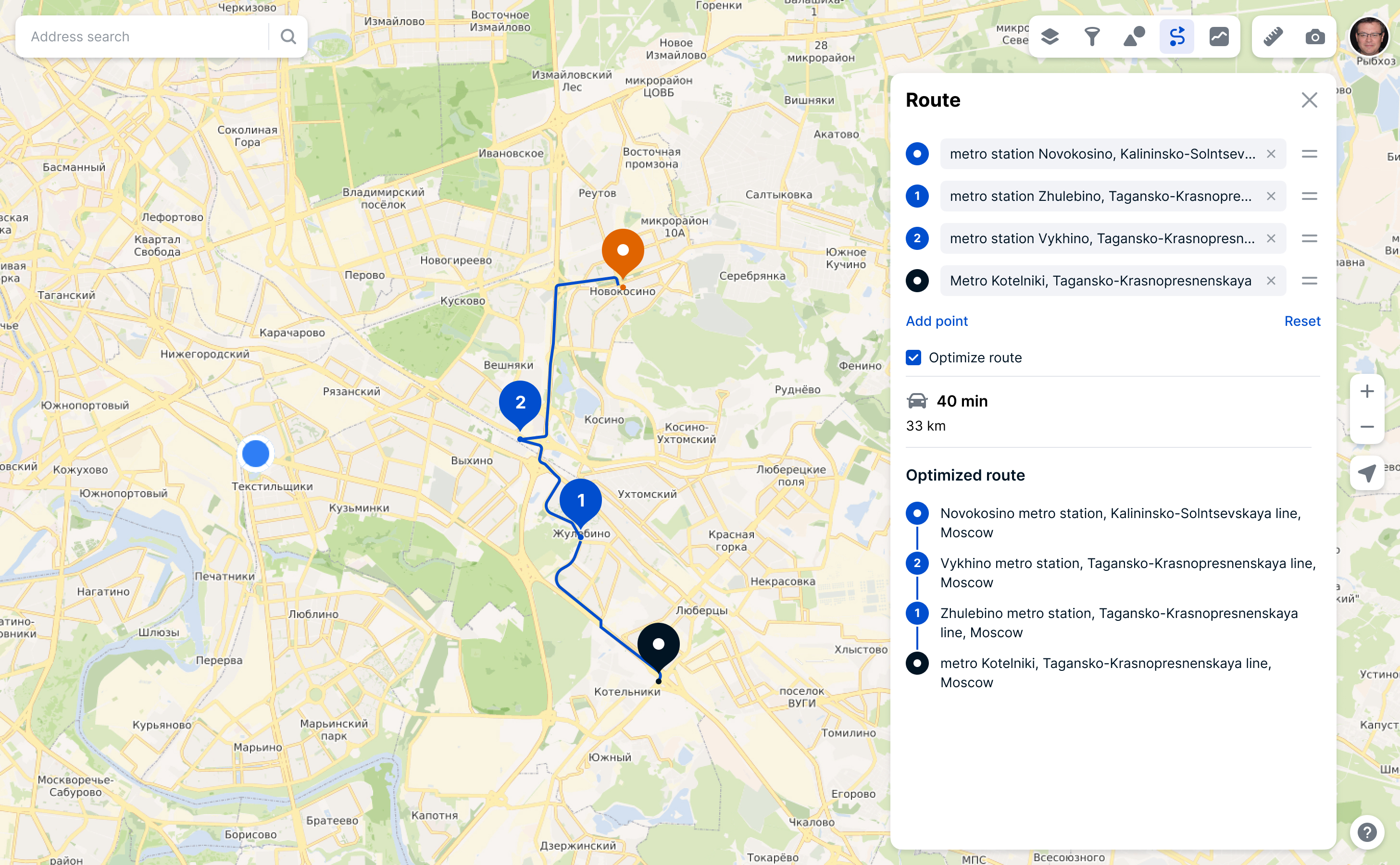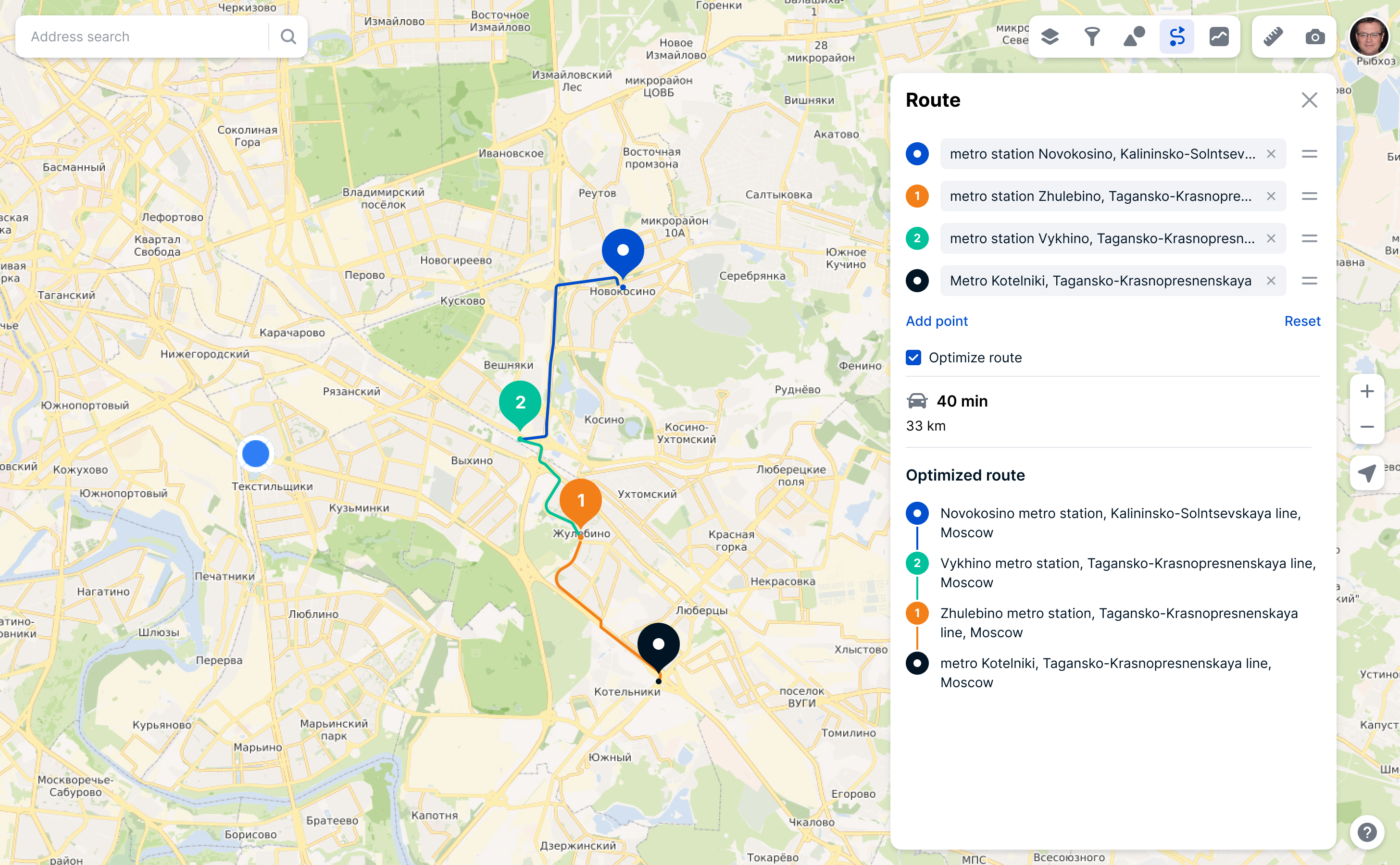 Constructing routes and optimizing the passage of waypoints with maximum time savings. In the future, it was planned to make a full-fledged navigator for engineers, couriers and agents who do field work.