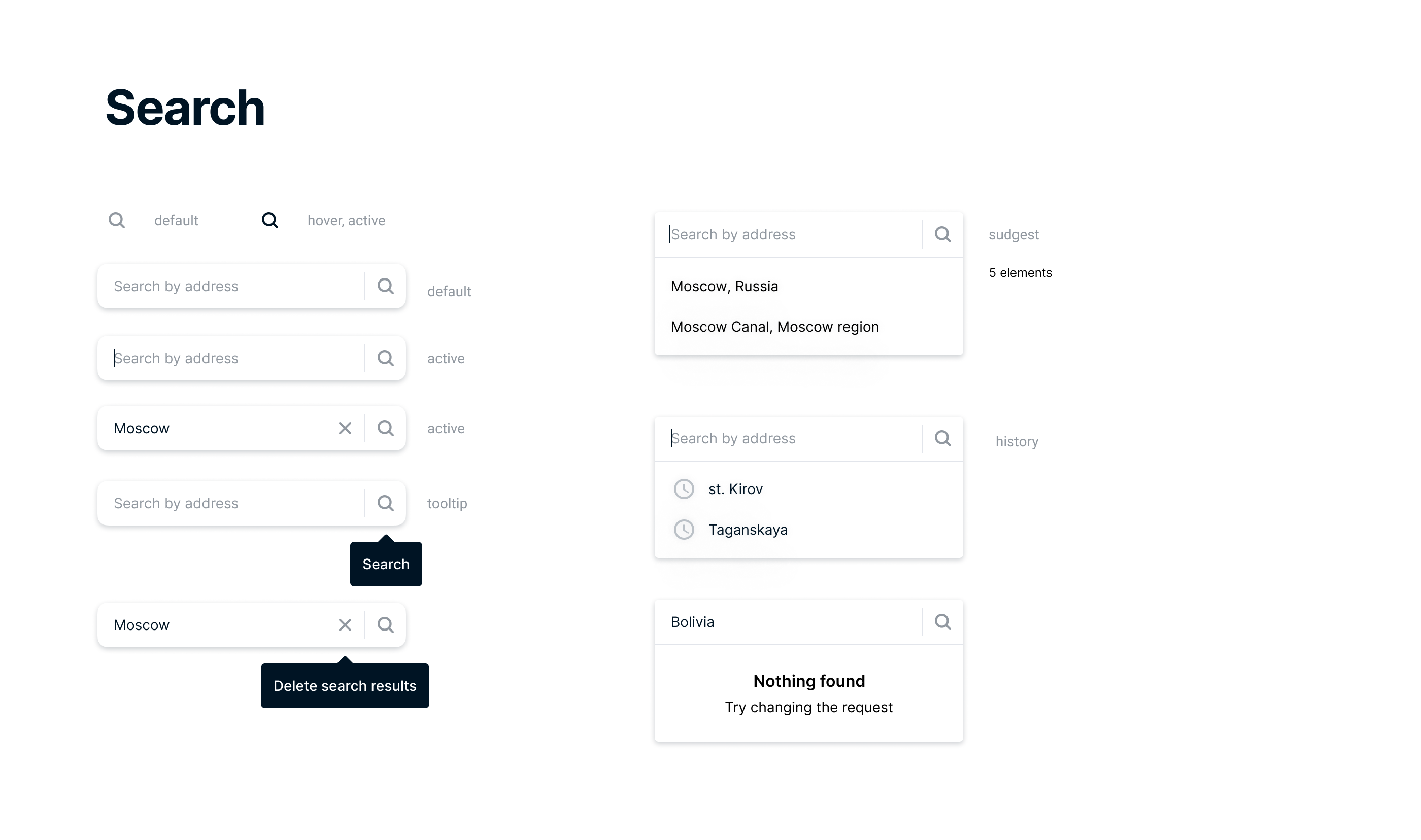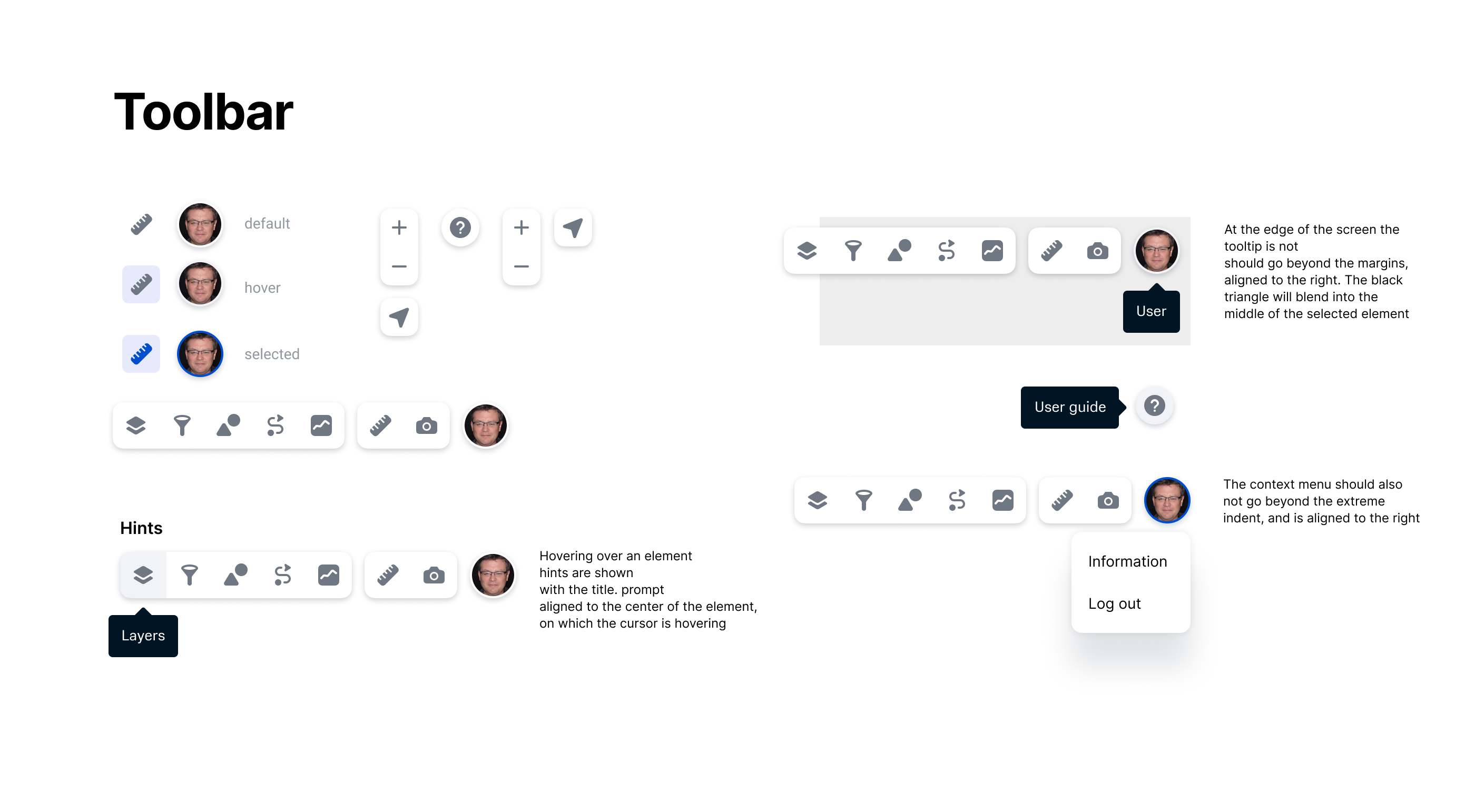 At first, I designed toolbar and search bar, because the work with the GIS begins with the choice of the tool.