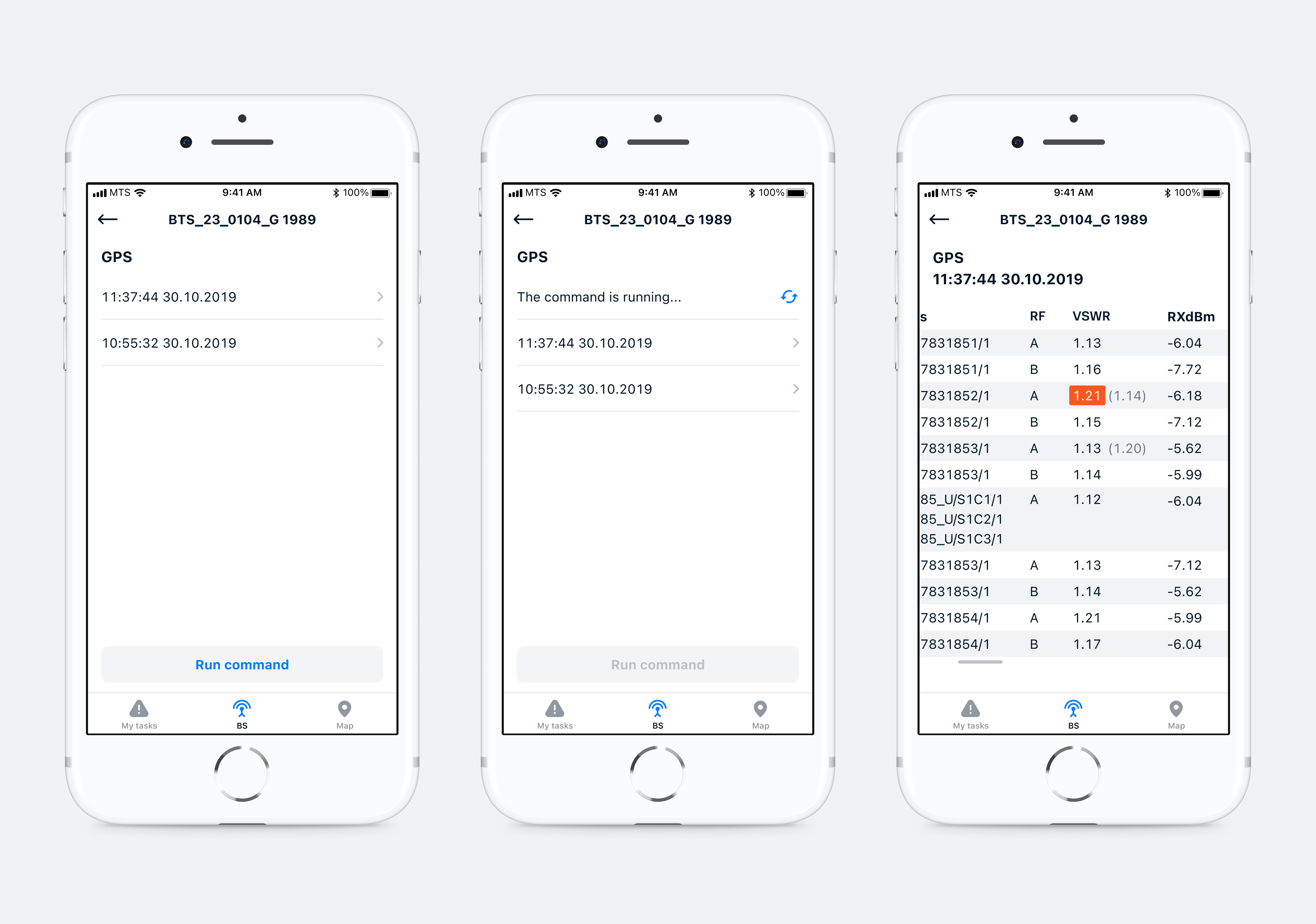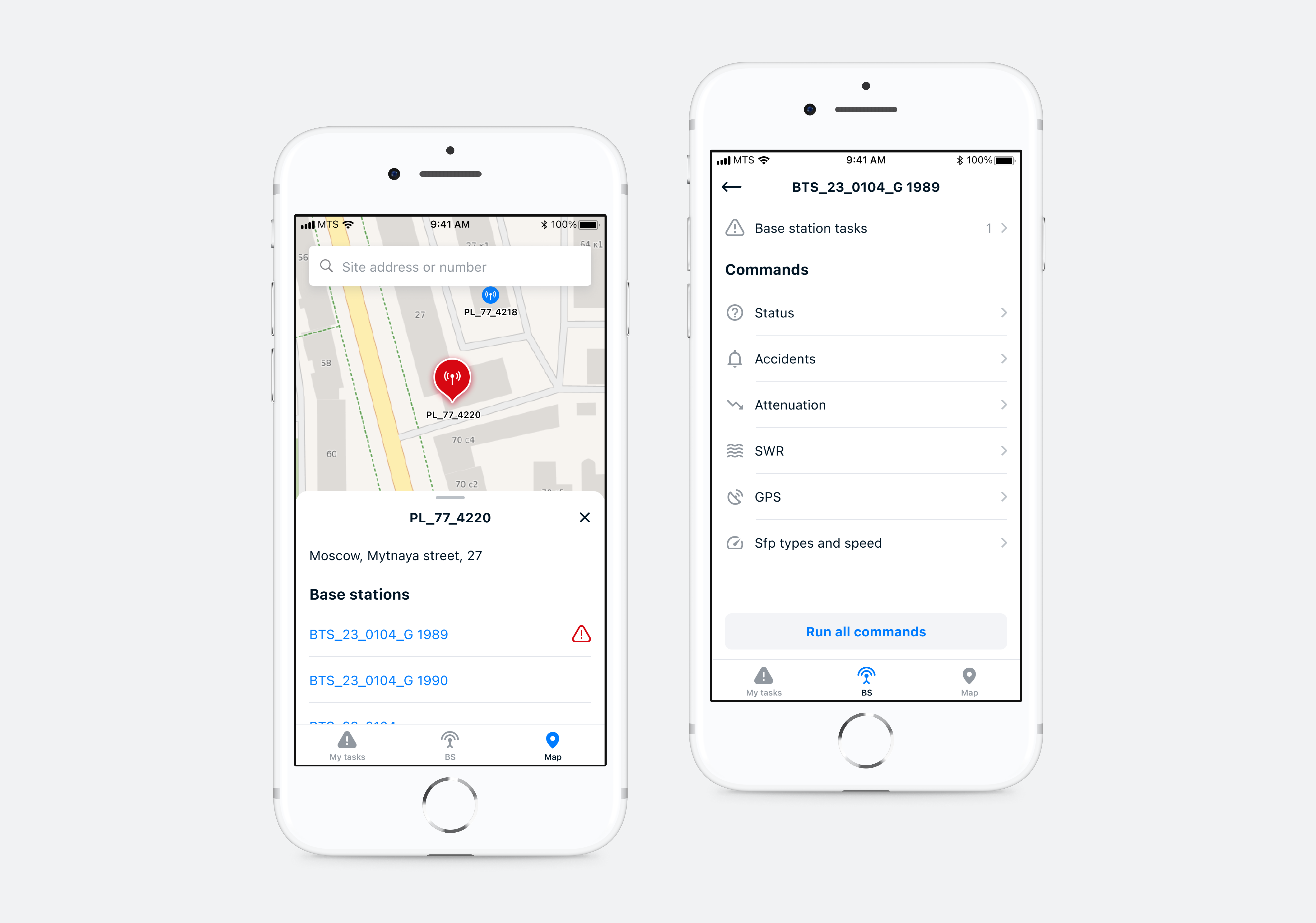 The F1 app helps engineers repair equipment at cellular base stations. A base station is equipment for receiving and transmitting radio signals from one subscriber to another. The application shows the engineer’s tasks, helps to quickly find out the necessary parameters of the technical condition of the equipment and close the work.